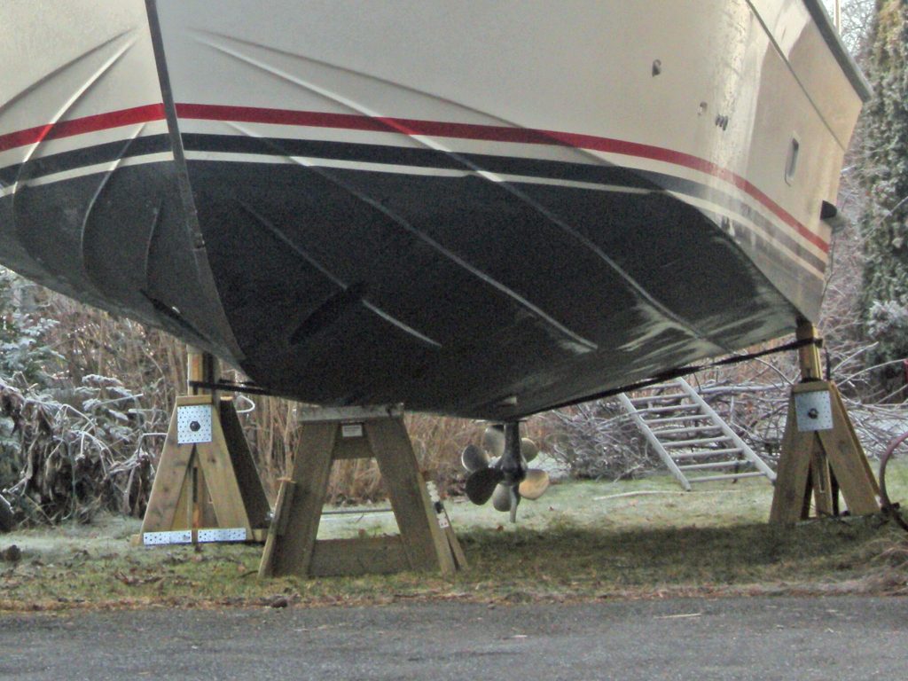 På kölbocken bör den bifogade kölklossen användas – den suger fast mot gummiplattan vid belastning och förbättrar säkerheten mot sidoverkande vind. Vid flera bräd-/plankstumpar på stödplattan (för att få båten att luta akterut) rekommenderas att dessa förbinds med spik eller skruv.